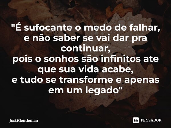 "É sufocante o medo de falhar, e não saber se vai dar pra continuar, pois o sonhos são infinitos ate que sua vida acabe, e tudo se transforme e apenas em um legado"