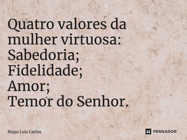 Quatro valores da mulher virtuosa: Sabedoria; Fidelidade; Amor; Temor do Senhor.