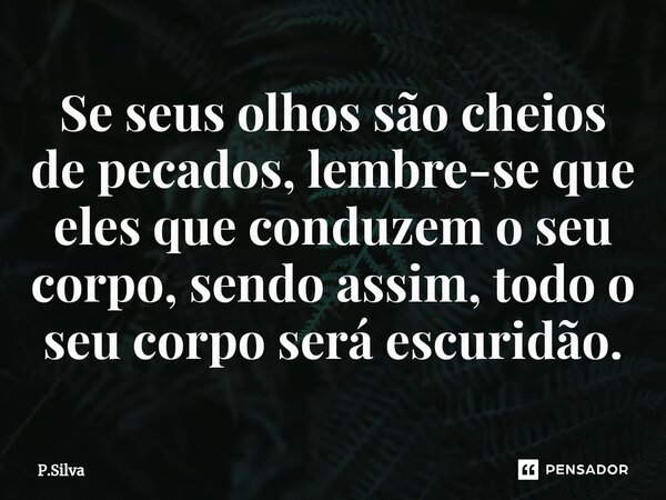 Se seus olhos são cheios de pecados, lembre-se que eles que conduzem o seu corpo, sendo assim, todo o seu corpo será escuridão.