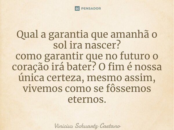 Qual a garantia que amanhã o sol ira nascer? como garantir que no futuro o coração irá bater? O fim é nossa única certeza, mesmo assim, vivemos como se fôssemos eternos.