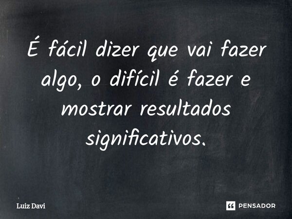É fácil dizer que vai fazer algo, o difícil é fazer e mostrar resultados significativos.