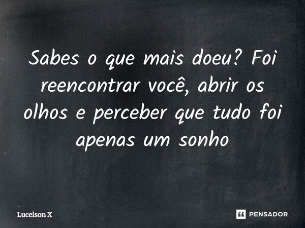 Sabes o que mais doeu? Foi reencontrar você, abrir os olhos e perceber que tudo foi apenas um sonho