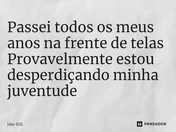 ⁠Passei todos os meus anos na frente de telas Provavelmente estou desperdiçando minha juventude... Frase de Jake Hill.
