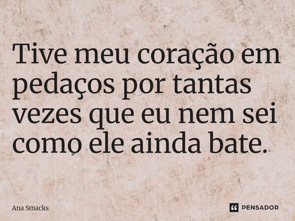 Tive meu coração em pedaços por tantas vezes que eu nem sei como ele ainda bate.