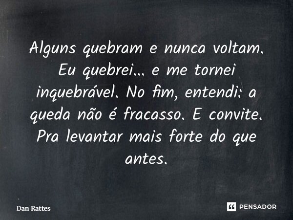 Alguns quebram e nunca voltam. Eu quebrei... e me tornei inquebrável. No fim, entendi: a queda não é fracasso. E convite. Pra levantar mais forte do que antes.