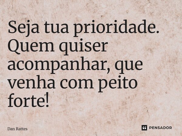 Seja tua prioridade. Quem quiser acompanhar, que venha com peito forte!