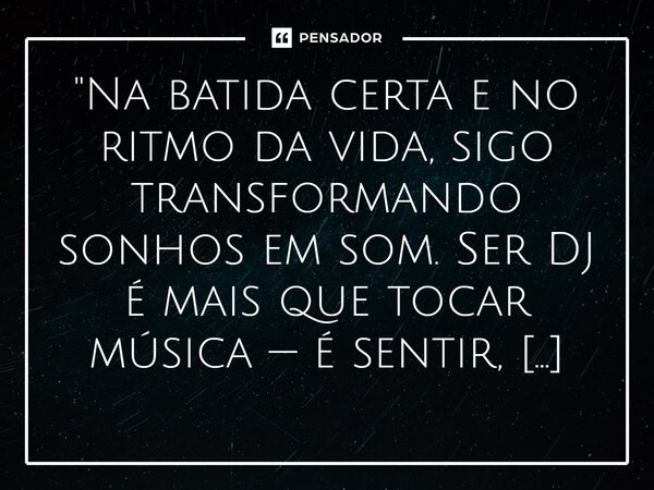 "Na batida certa e no ritmo da vida, sigo transformando sonhos em som. Ser DJ é mais que tocar música — é sentir, viver e emocionar!" 🎧