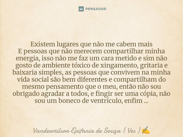Existem lugares que não me cabem... Vandermilson Epifania de...