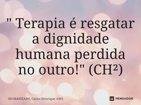 " Terapia é resgatar a dignidade humana perdida no outro!" (CH²)