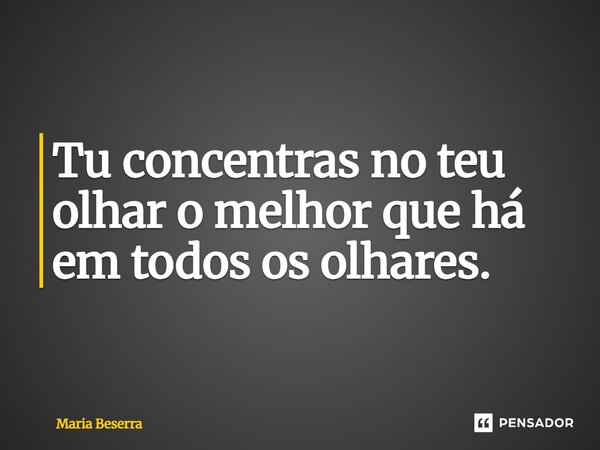 Tu concentras no teu olhar o melhor que há em todos os olhares.