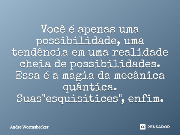 Você é apenas uma possibilidade, uma tendência em uma realidade cheia de possibilidades. Essa é a magia da mecânica quântica. Suas "esquisitices", enfim.