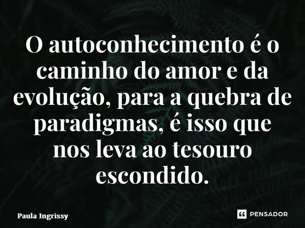O autoconhecimento é o caminho do amor e da evolução, para a quebra de paradigmas, é isso que nos leva ao tesouro escondido.