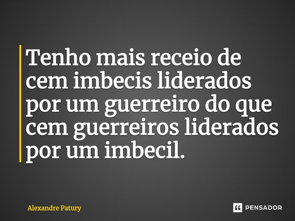 Tenho mais receio de cem imbecis liderados por um guerreiro do que cem guerreiros liderados por um imbecil.