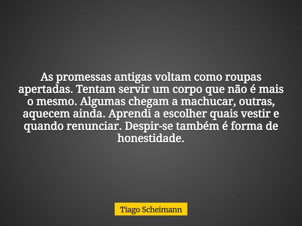 As promessas antigas voltam como roupas... Tiago Scheimann