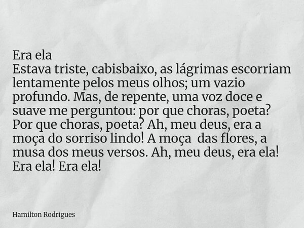 Era ela Estava triste, cabisbaixo, as... Hamilton Rodrigues