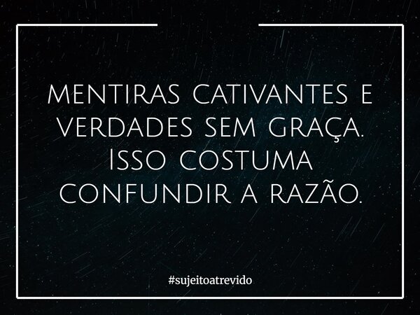 mentiras cativantes e verdades sem graça. Isso costuma confundir a razão.