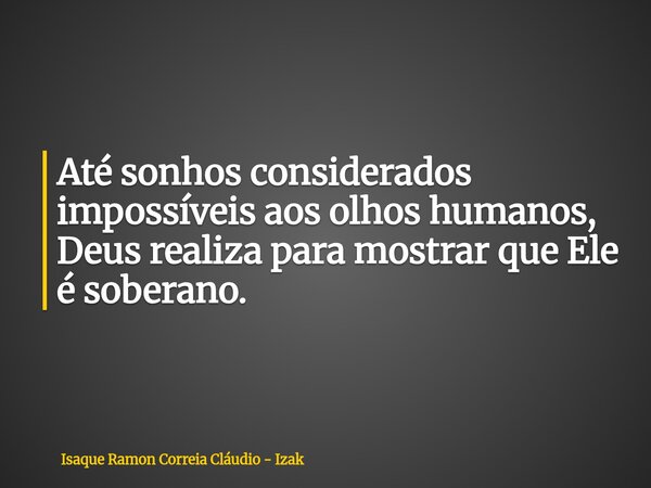 Até sonhos considerados impossíveis aos olhos humanos, Deus realiza para mostrar que Ele é soberano.