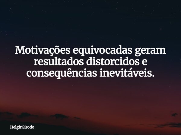 Motivações equivocadas geram resultados distorcidos e consequências inevitáveis.