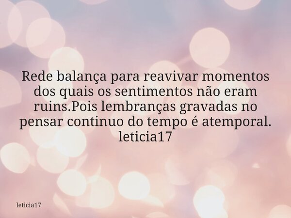 Rede balança para reavivar momentos dos quais os sentimentos não eram ruins.Pois lembranças gravadas no pensar continuo do tempo é atemporal. leticia17