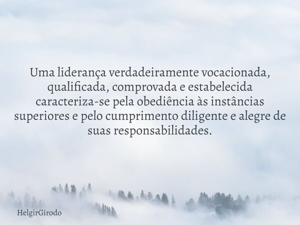 Uma liderança verdadeiramente vocacionada, qualificada, comprovada e estabelecida caracteriza-se pela obediência às instâncias superiores e pelo cumprimento diligente e alegre de suas responsabilidades.