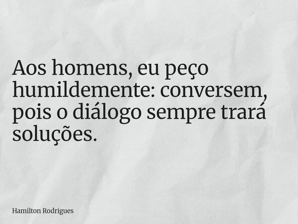 Aos homens, eu peço humildemente: conversem, pois o diálogo sempre trará soluções.