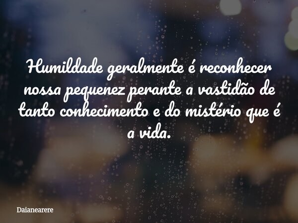 Humildade geralmente é reconhecer nossa pequenez perante a vastidão de tanto conhecimento e do mistério que é a vida.