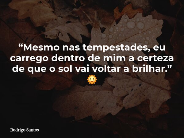 “Mesmo nas tempestades, eu carrego dentro de mim a certeza de que o sol vai voltar a brilhar.” 🌞