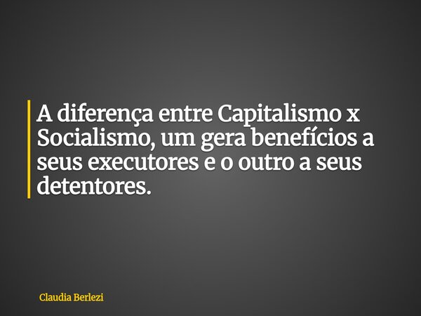 A diferença entre Capitalismo x Socialismo, um gera benefícios a seus executores e o outro a seus detentores.