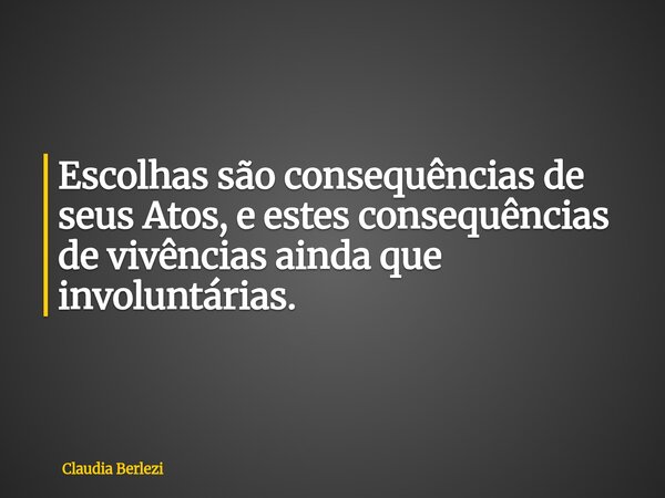 Escolhas são consequências de seus Atos, e estes consequências de vivências ainda que involuntárias.