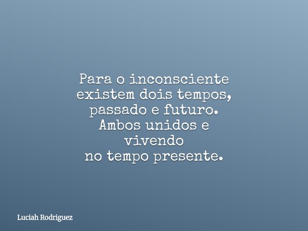 Para o inconsciente existem dois tempos, passado e futuro. Ambos unidos e vivendo no tempo presente.