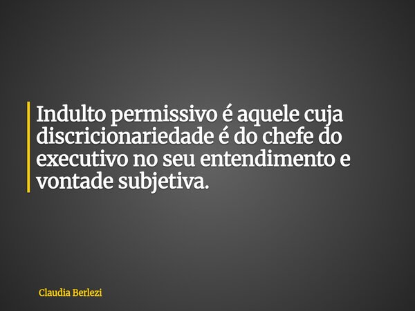 Indulto permissivo é aquele cuja discricionariedade é do chefe do executivo no seu entendimento e vontade subjetiva.