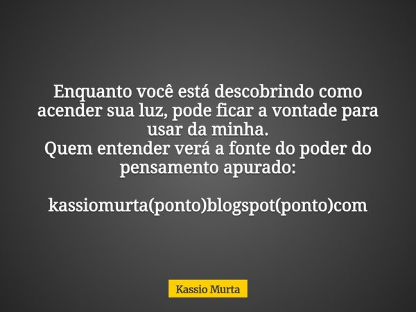 Enquanto você está descobrindo como acender sua luz, pode ficar a vontade para usar da minha. Quem entender verá a fonte do poder do pensamento apurado: kassiomurta(ponto)blogspot(ponto)com