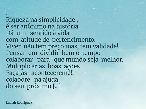 .. Riqueza na simplicidade, é ser... Luciah Rodriguez