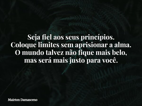 Seja fiel aos seus princípios. Coloque limites sem aprisionar a alma. O mundo talvez não fique mais belo, mas será mais justo para você.