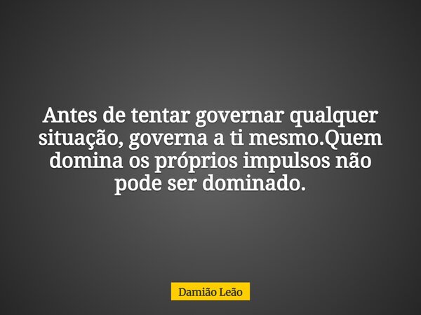 Antes de tentar governar qualquer situação, governa a ti mesmo.Quem domina os próprios impulsos não pode ser dominado.