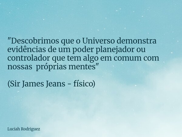 "Descobrimos que o Universo demonstra evidências de um poder planejador ou controlador que tem algo em comum com nossas próprias mentes" (Sir James Jeans - físico)