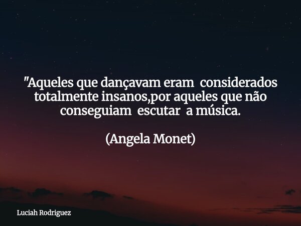 "Aqueles que dançavam eram considerados totalmente insanos,por aqueles que não conseguiam escutar a música. (Angela Monet)