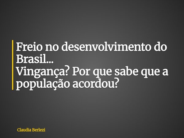 Freio no desenvolvimento do Brasil... Vingança? Por que sabe que a população acordou?
