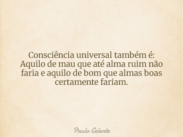 Consciência universal também é: Aquilo de mau que até alma ruim não faria e aquilo de bom que almas boas certamente fariam.