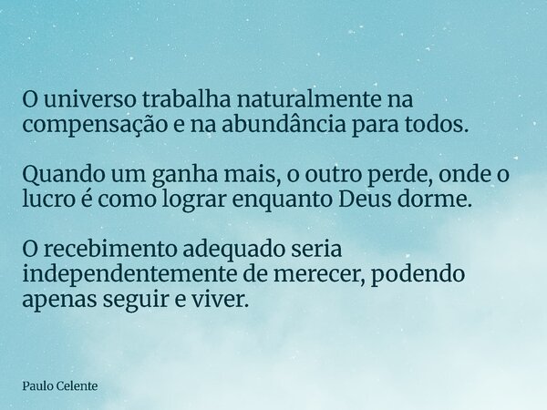 O universo trabalha naturalmente na... Paulo Celente