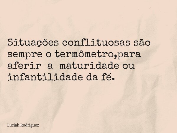 Situações conflituosas são sempreo termômetro,para aferir a maturidade ou infantilidade da fé.