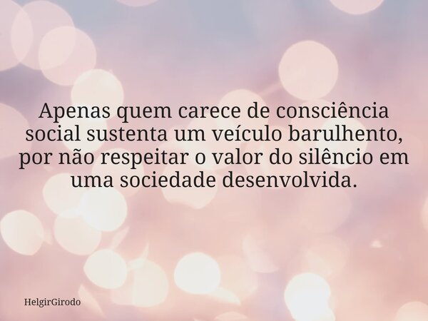 Apenas quem carece de consciência social sustenta um veículo barulhento, por não respeitar o valor do silêncio em uma sociedade desenvolvida.