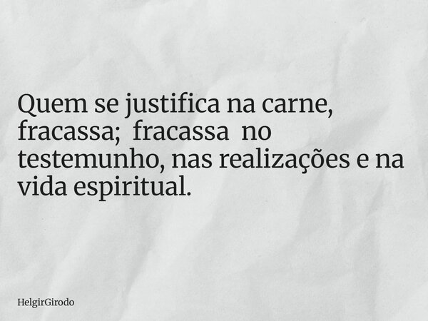 Quem se justifica na carne, fracassa; fracassa no testemunho, nas realizações e na vida espiritual.