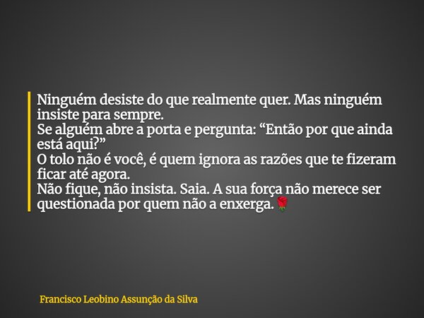 Ninguém desiste do que realmente quer.... Francisco Leobino Assunção...