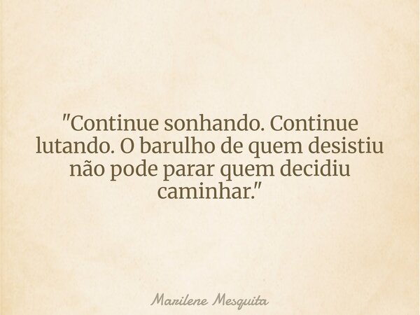 "Continue sonhando. Continue lutando. O barulho de quem desistiu não pode parar quem decidiu caminhar."