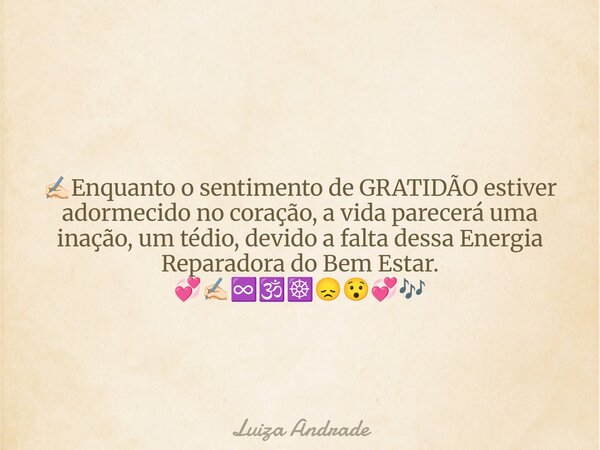✍🏻Enquanto o sentimento de GRATIDÃO estiver adormecido no coração, a vida parecerá uma inação, um tédio, devido a falta dessa Energia Reparadora do Bem Estar. 💞✍🏻♾️🕉️☸️😞😯💞🎶