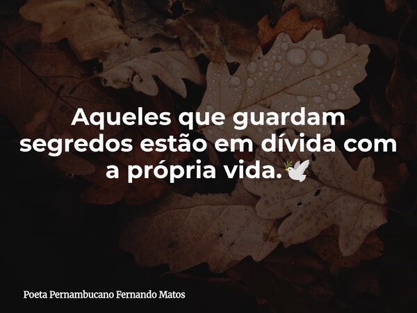 Aqueles que guardam segredos estão em dívida com a própria vida.🕊