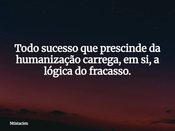 Todo sucesso que prescinde da humanização carrega, em si, a lógica do fracasso.