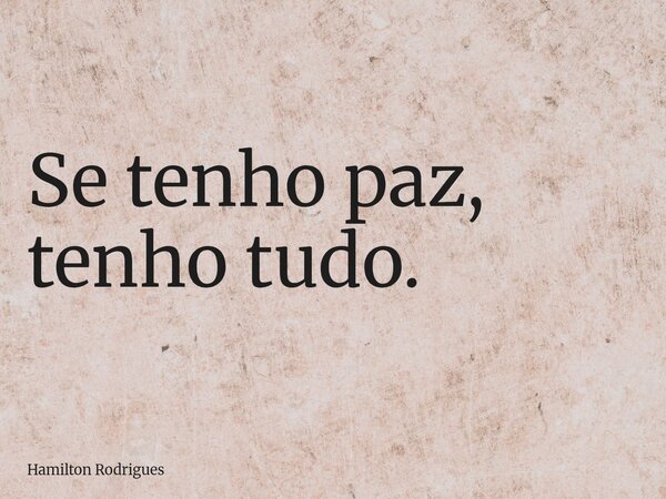 Se tenho paz, tenho tudo.