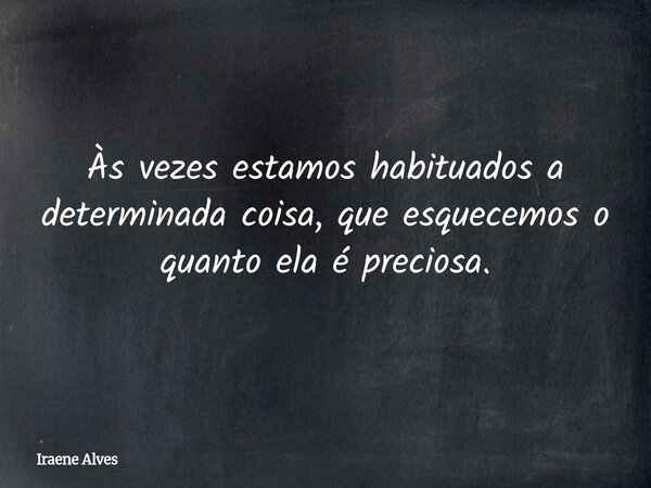 Às vezes estamos habituados a determinada coisa, que esquecemos o quanto ela é preciosa.
